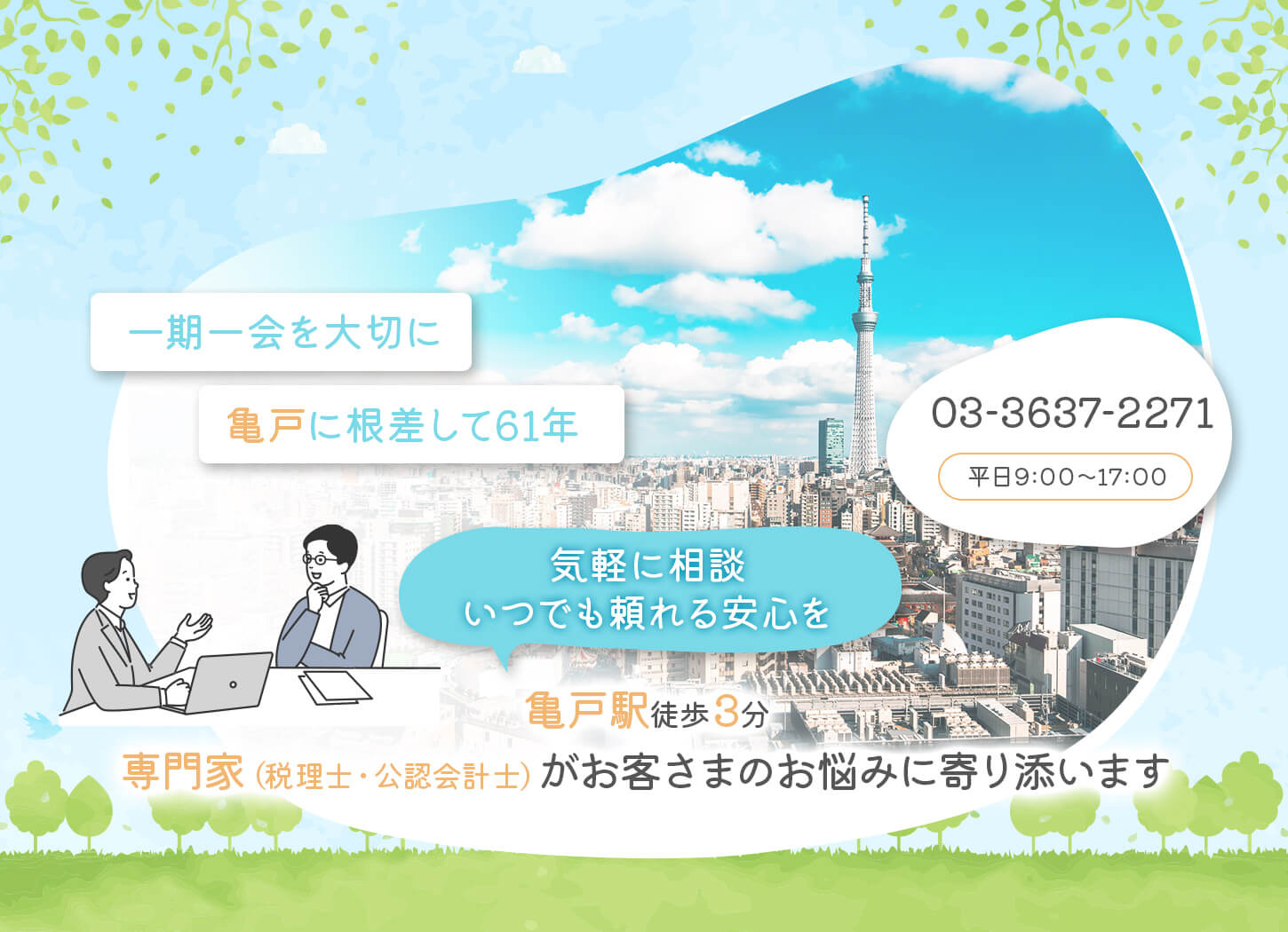弊所は、”亀戸”に根差して61年の地域密着型税理士事務所です。